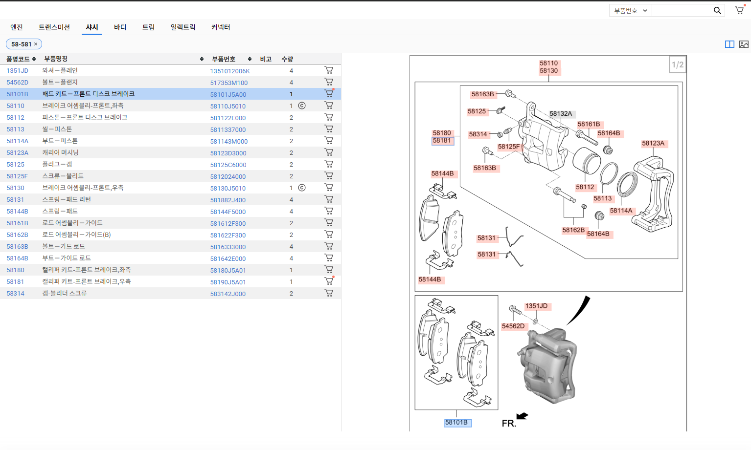 내가 필요한 앞 브레이크 패드의 품번을 알아냈다.